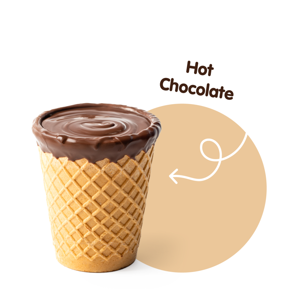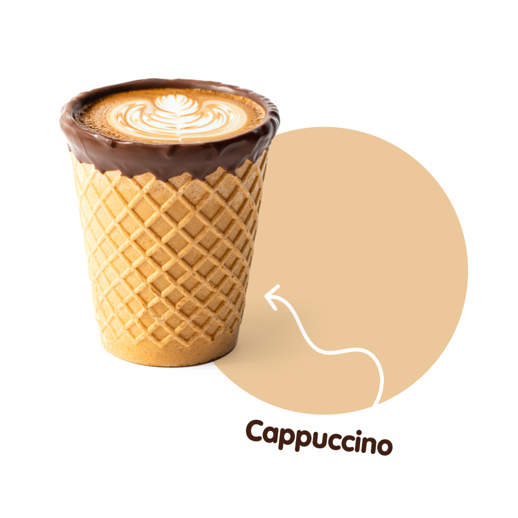120ml wafer cup internally coated in Belgian dark chocolate: the perfect base for making cappuccinos and coffee preparations.